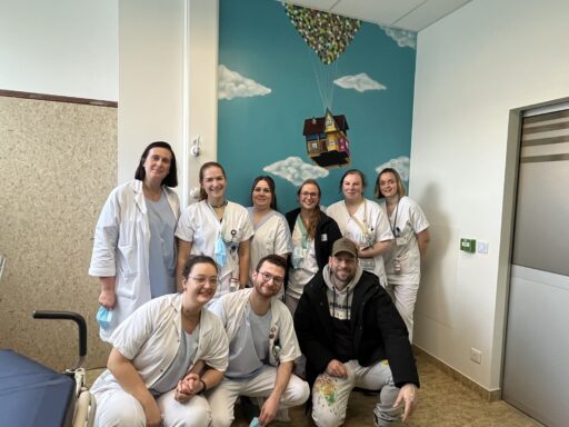 La salle de l’infirmier(e) d’Orientation et d’Accueil des urgences pédiatriques est maintenant décorée d’une fresque grâce au talent du graffeur Kejo-Art.